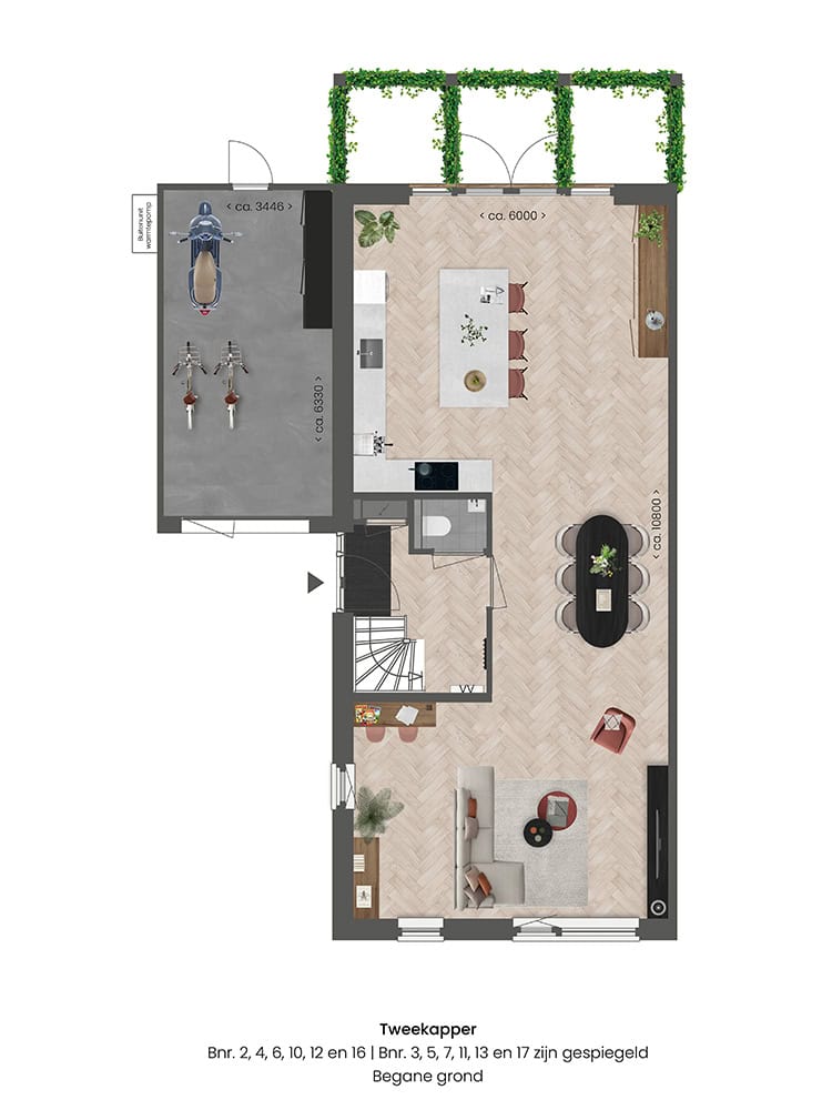 *Alle beelden, sfeerplattegronden en informatie is met de grootste zorg samengesteld en gebaseerd op het voorlopig ontwerp. Bepaalde elementen kunnen nog wijzigen. Aan deze website, woningconfigurator, prijzen, tekeningen, maatvoeringen, impressies e.d. kunnen geen rechten worden ontleend.